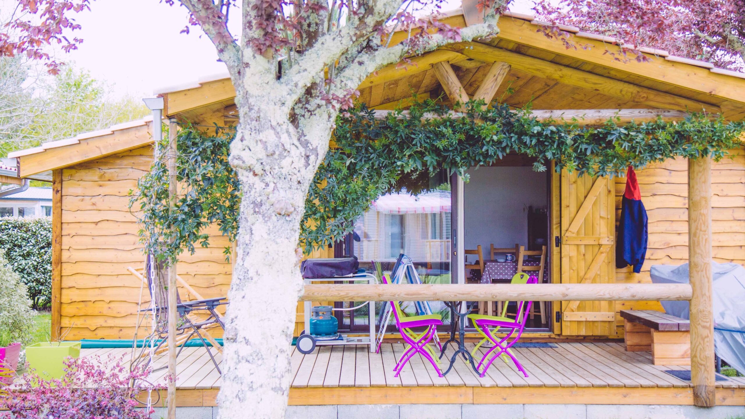 Aux Couleurs du Ferret propose bien sûr des mobil-homes classiques, mais aussi de jolies cabanes sur pilotis ! Le matin, on prend plaisir à petit-déjeuner sur la terrasse, avant d’enfourcher le vélo pour une balade sur la piste cyclable de la Vélodyssée, ou en direction du Bassin d’Arcachon (4kms).