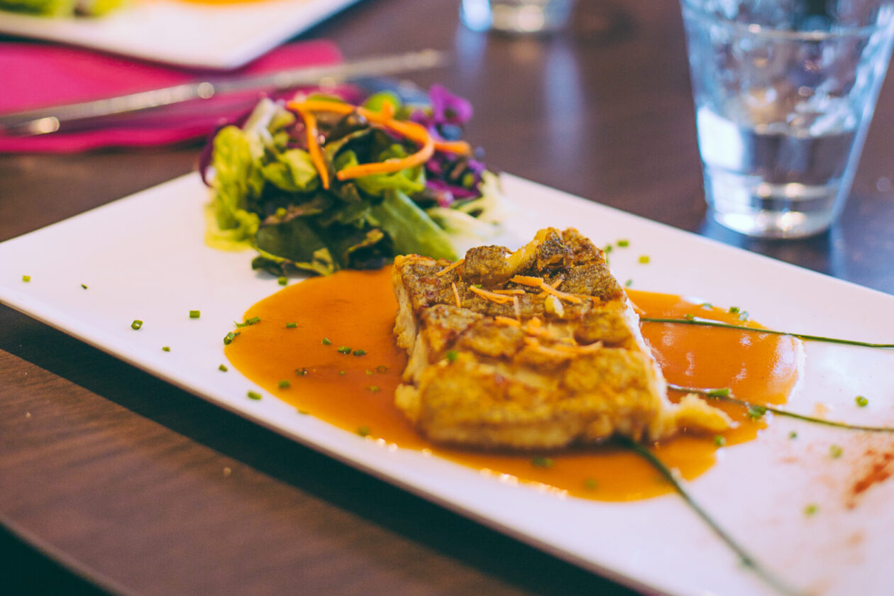 Ici, le menu du midi est parfait. Petite salade en entrée et poisson pour le plat ! Nous avons tout de même craqué pour le dessert, mais impossible de résister à l’entremet au chocolat, à la crème brûlée ou au fondant. Un petit écart à cette journée détox vite rattrapé !