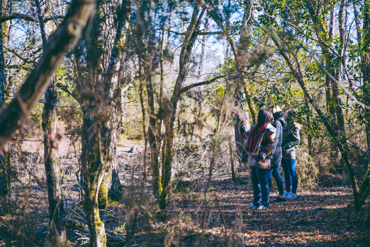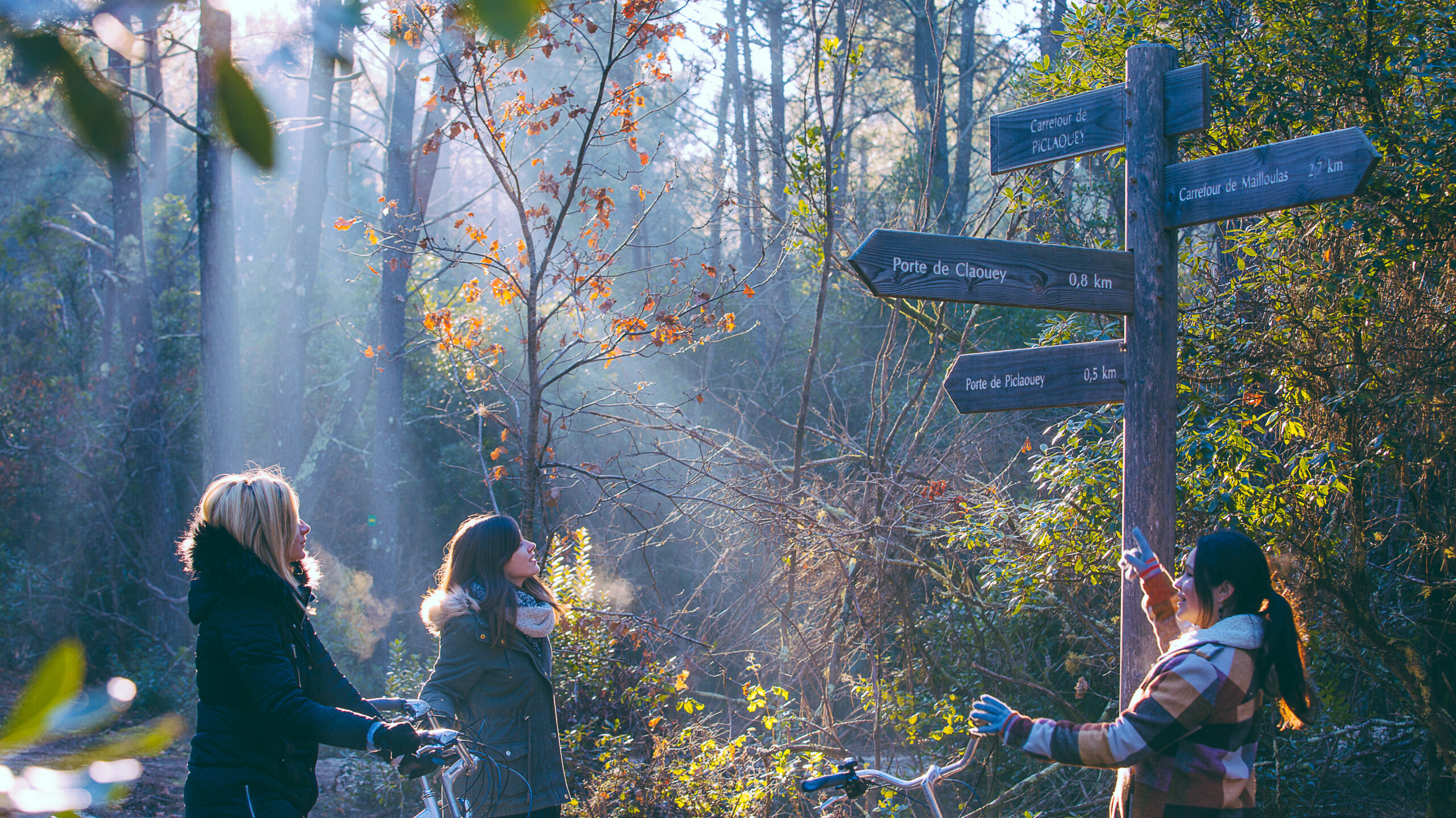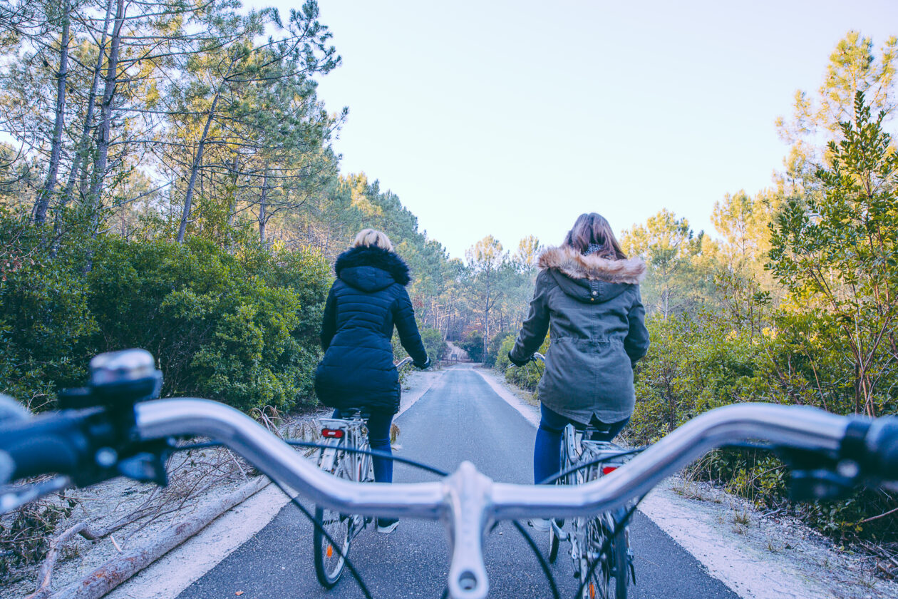 Si l’air frais nous rappelle que nous sommes bien en hiver, la balade active réchauffe vite. Après quelques minutes seulement, la piste cyclable de Claouey nous amène en lisière de forêt.