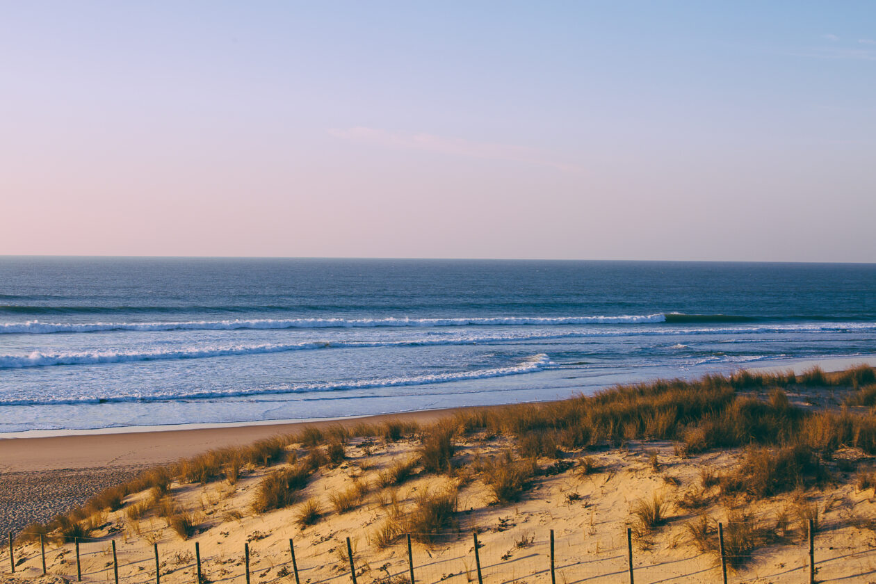 En descendant les caillebotis qui mènent à la plage du Grand Crohot, nous avons eu la belle surprise d’être accompagnées par le coucher du soleil. A cette période de l’année, il se couche aux alentours de 18h, retardant de quelques minutes chaque jour en attendant le printemps.