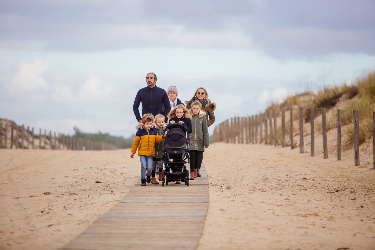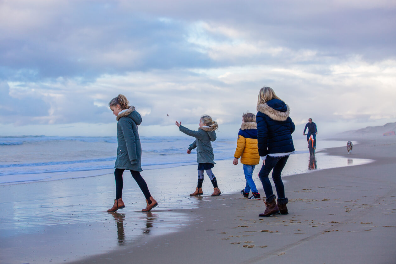 La plage, même en hiver, reste un terrain de jeu extraordinaire. Les petits affrontent le va et vient des vagues. Quelques pas en avant puis vite machine arrière … les chaussures ne resteront pas sèches très longtemps
