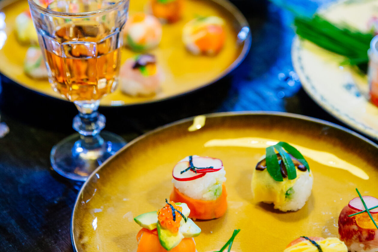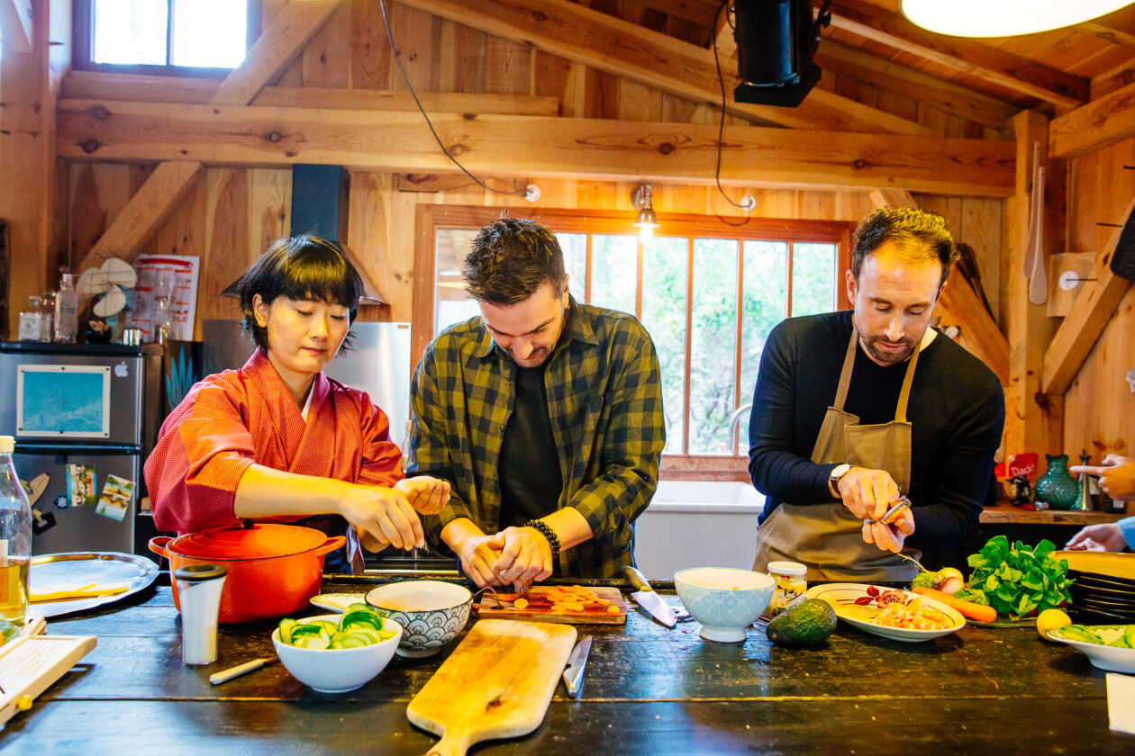 Cette année, nous voulions un repas de fêtes particulier, les grands parents nous ont fait une belle surprise. Ils ont fait appel à Mio, cuisinière voire artiste (!) qui propose des ateliers et cours de cuisine autour de la gastronomie japonaise. La formule permettrait de se régaler à la fois des plats et des moments partagés ensemble à la préparation