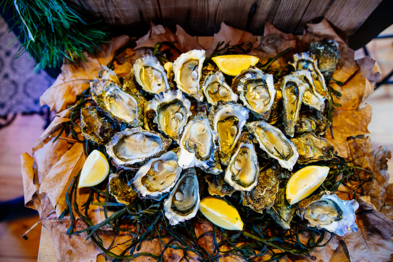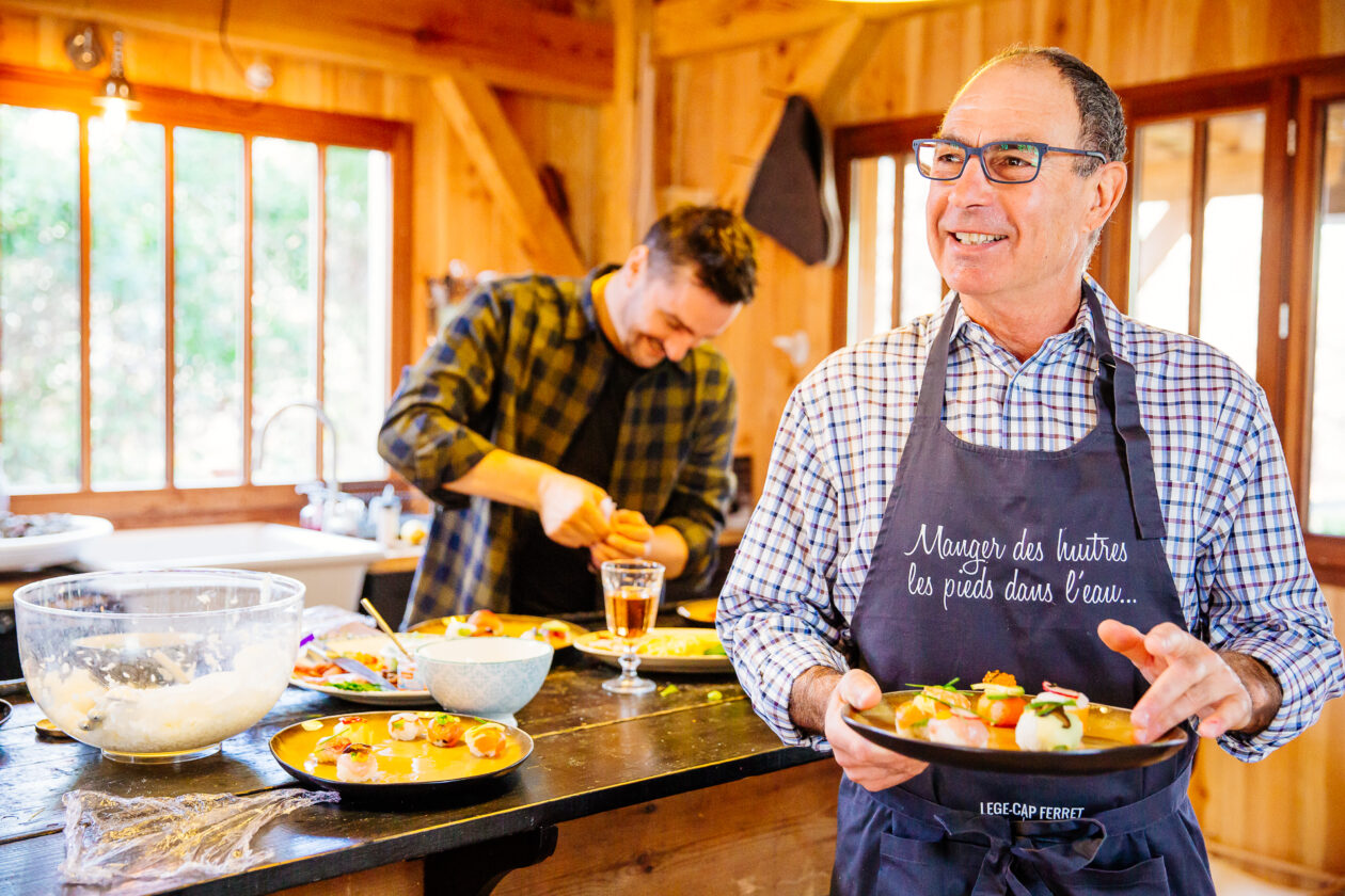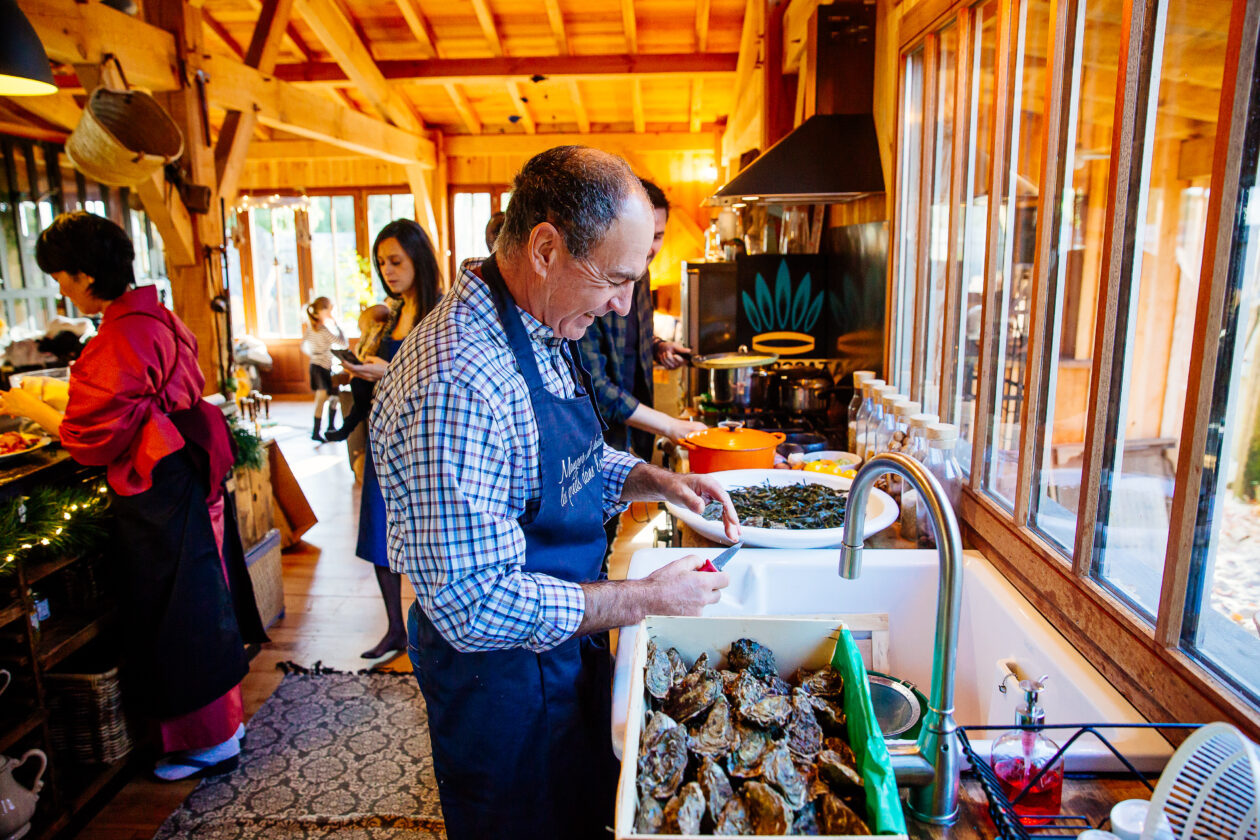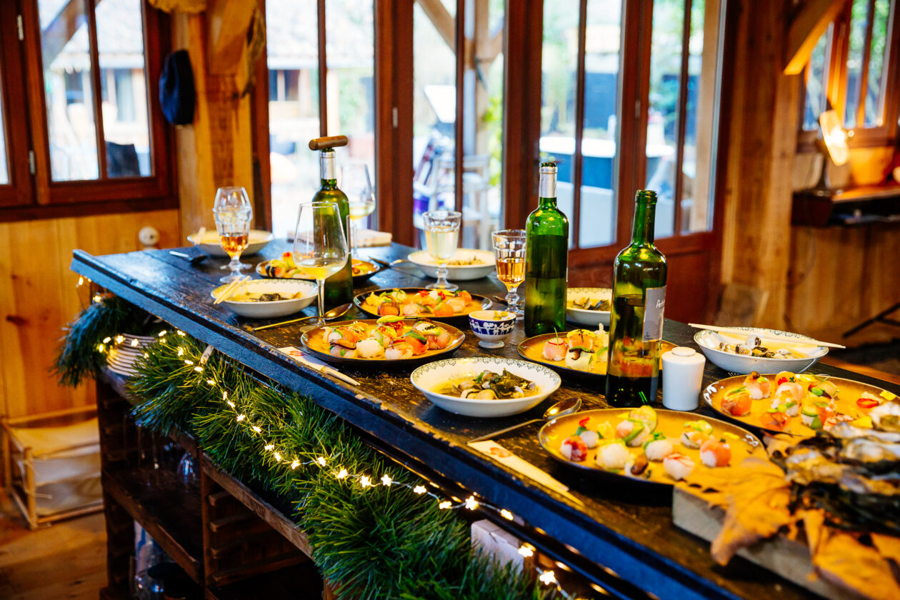 Impossible pour nous de se passer des huitres, même avec un repas si bien préparé ! Quelques minutes avant de passer à table, Fred et François se lancent dans l’écaillage pour nous offrir un magnifique plateau.