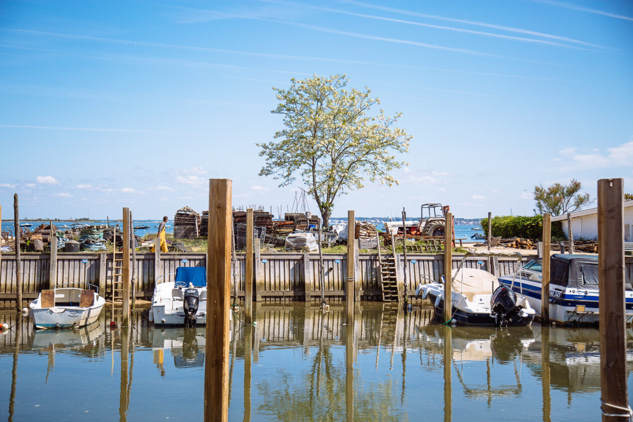A marée basse, en marchant 5 minutes à droite de la Chapelle sur la plage, on accède à un banc de sable entre les parcs à huîtres. Bienvenue sur la plage de l’Herbe ! On en profite aussi pour flâner dans ses ruelles et déguster quelques huîtres fraîches dans l’une des cabanes du village.