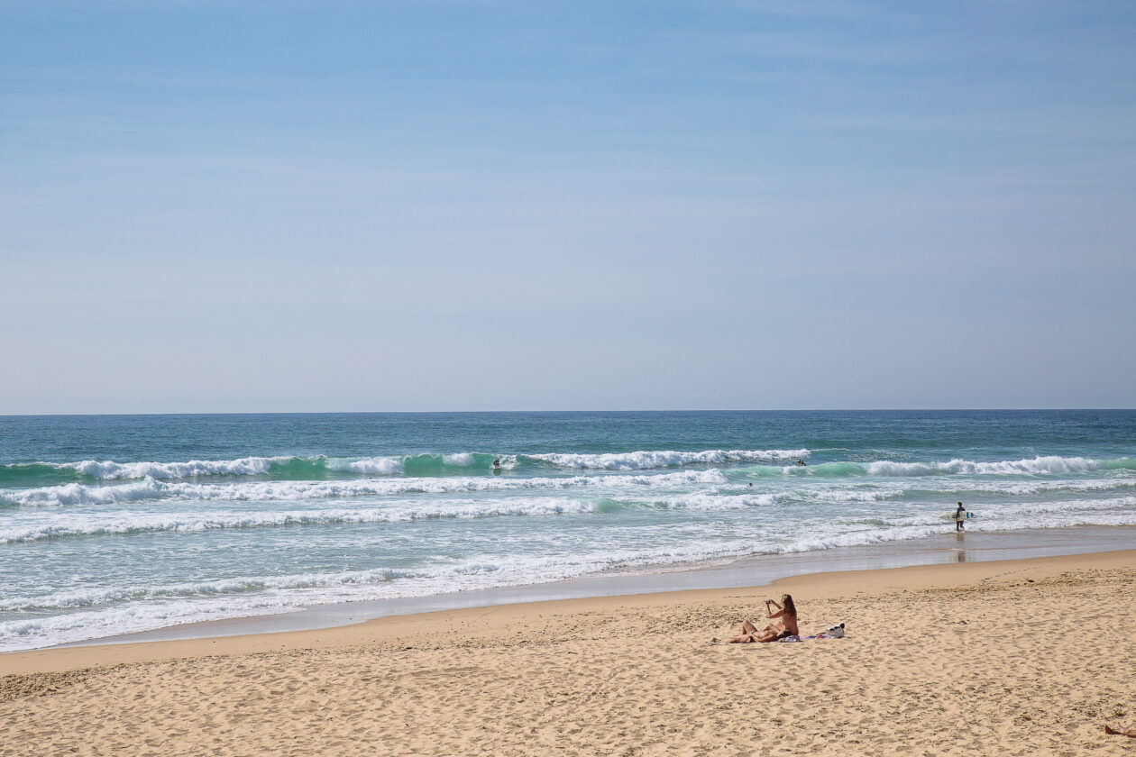 Pour accéder à cette plage océane, on doit traverser une forêt de pins et une petite dune de sable. Un vrai moment de bonheur (et de vraies vacances) avant même d’avoir posé la serviette !