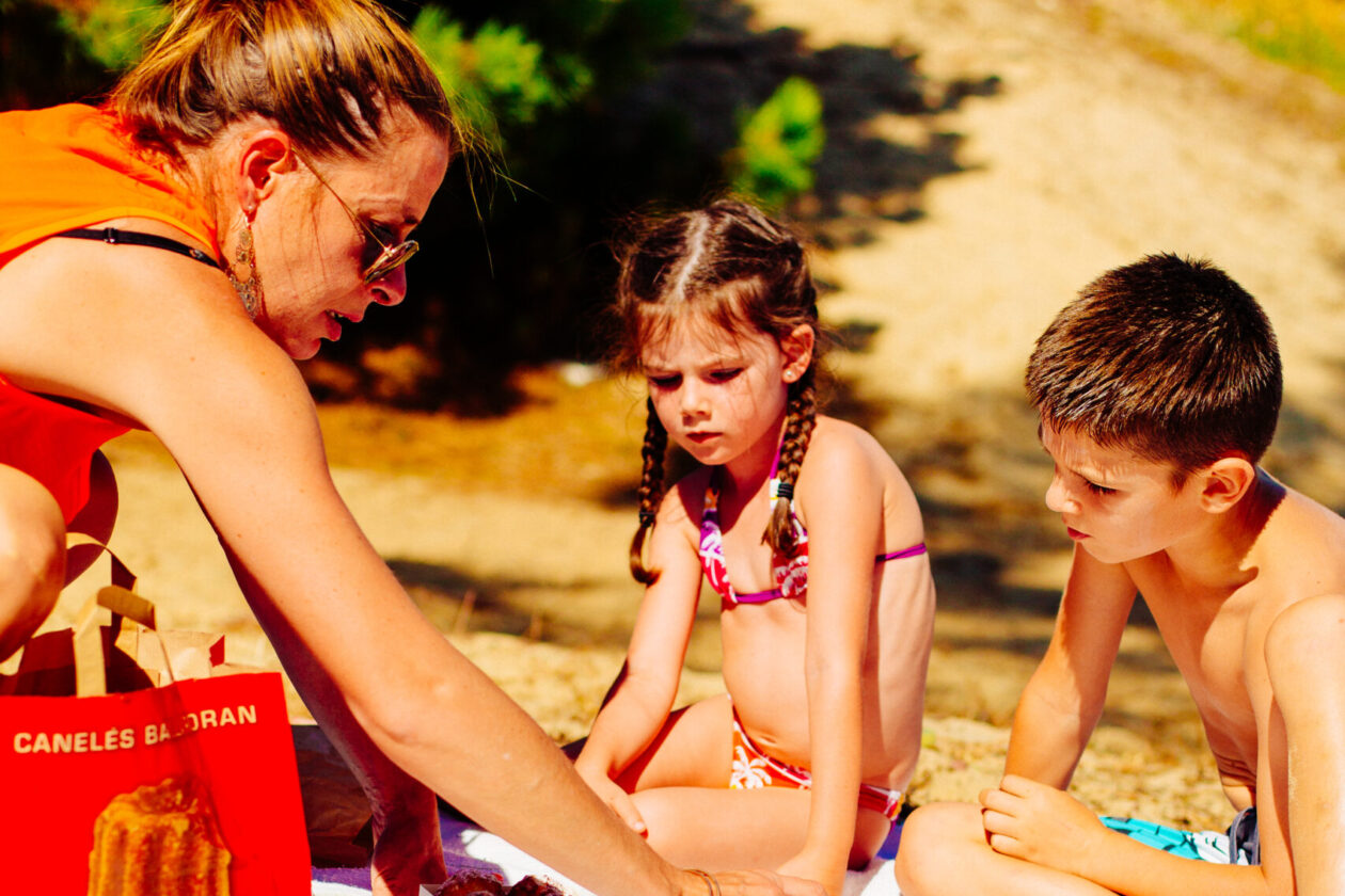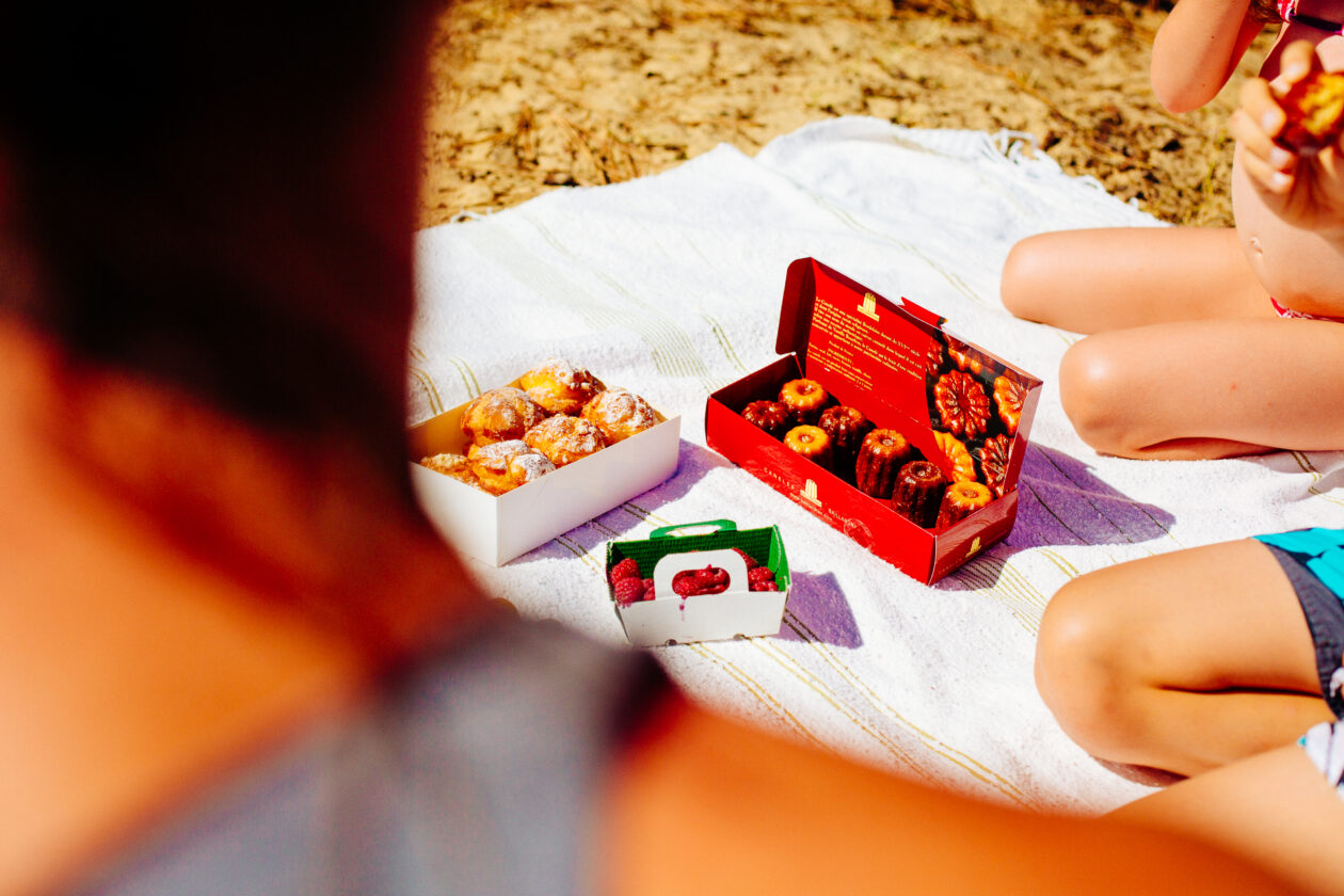 On pose la serviette sur le sable, aux abords de la plage pour profiter de l’ombre des pins. C’est l’heure de déguster le goûter !