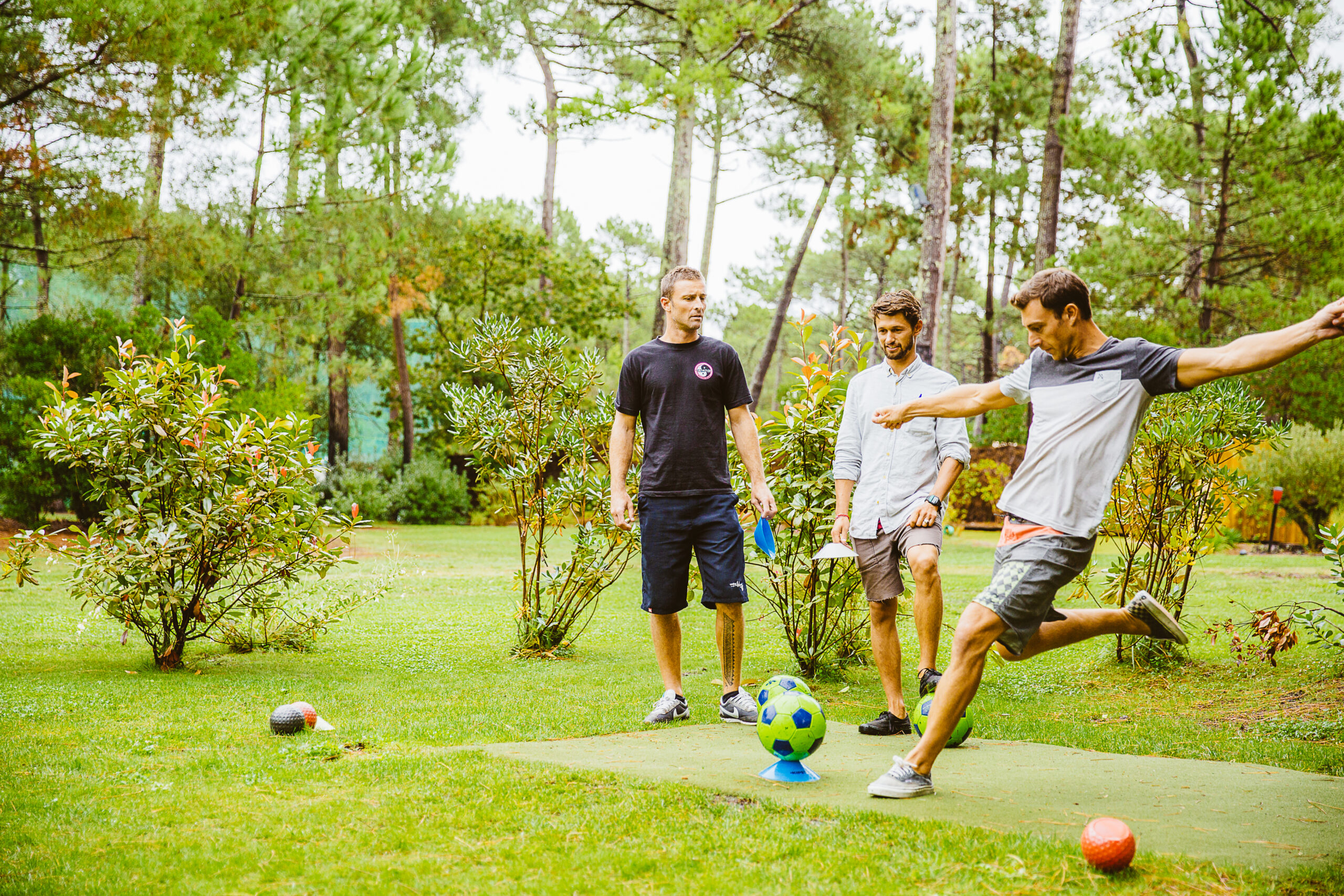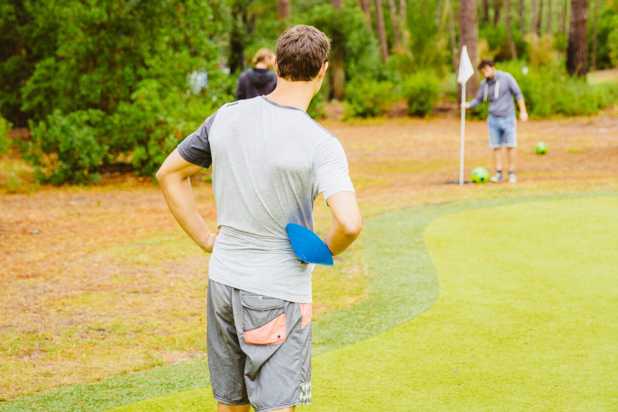 Pour notre deuxième journée entre copains, direction le Golf du Cap Ferret pour un après-midi tranquille. En plus du golf classique, le lieu propose une activité plutôt insolite : le FootGolf. Pas besoin d’être un pro pour s’éclater.
