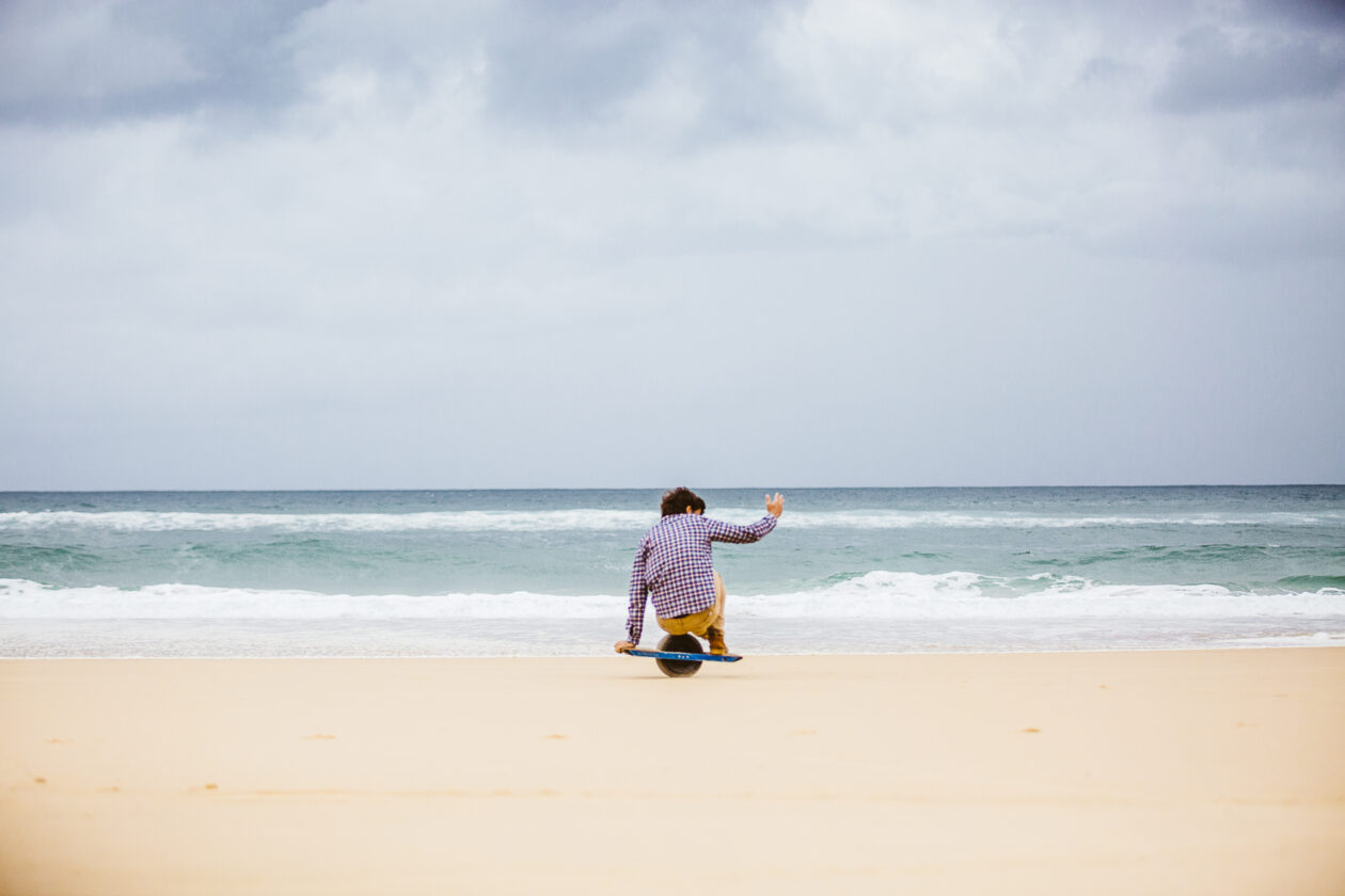 Retour à l’océan pour tester le OneWheel sur la plage du Grand Crohot. C’est impressionnant ! Le skate est aussi à l’aise sur le sable que dans la forêt. Et sur la plage, on peut accélérer au maximum sans risquer de se prendre un arbre !