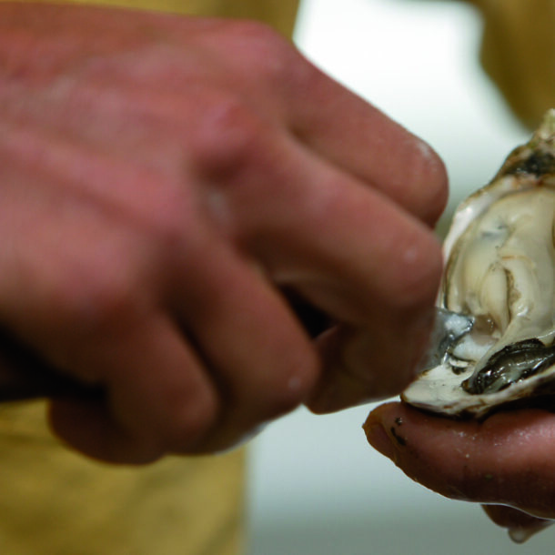 Austerngenuss mit den Füßen im Wasser