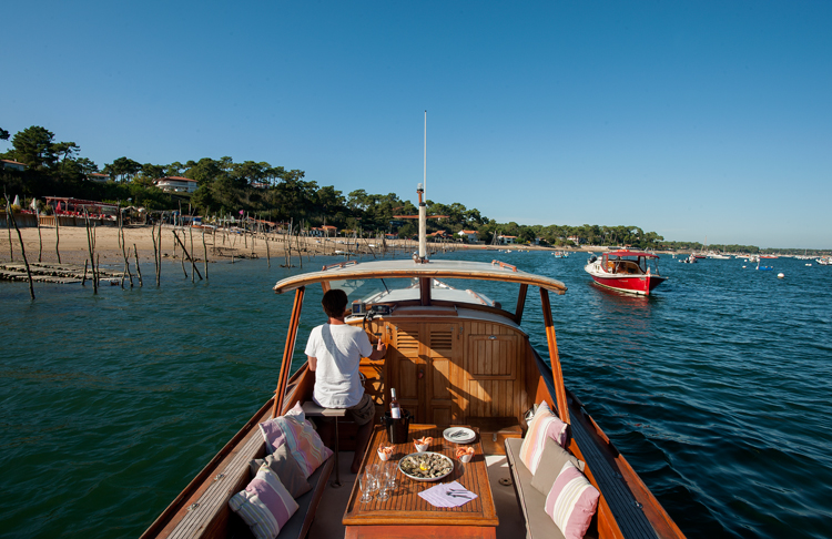 La empresa "les Pinasses du Bassin" dispone de una hermosa flota de barcos tradicionales de madera de 12 plazas. Puede alquilar la pinasa durante 2 horas, 3 horas, medio día o un día con su patrón. La fórmula de la contratación permite navegar a su ritmo, descubrir los rincones secretos del patrón y los sitios emblemáticos de la Isla de los Pájaros, el banco de Arguin, o los pueblos ostreros que bordean la península de Lège-Cap Ferret.