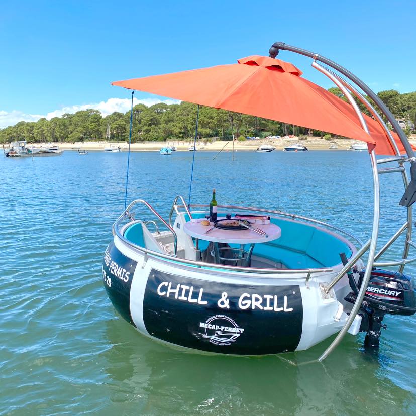Desde Grand Piquey, Mecap Ferret propone el alquiler de lanchas semirrígidas con licencia y de barcas de barbacoa equipadas con una barbacoa central y una sombrilla gigante. Un barco dedicado al relax y la convivencia... sin licencia