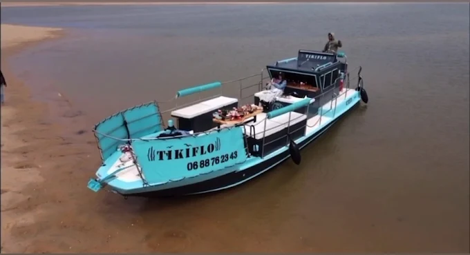 La gabarra de 12 plazas Tikiflo está disponible para alquiler.