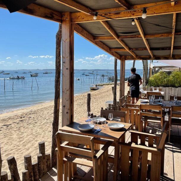 Comer ostras con los pies en el agua